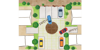 広々としたアプローチを設ける事で、駐車をスムーズにし、車の通り抜けも防止。 また、玄関が道路に面さず、子供の飛び出し事故の心配も軽減します。
