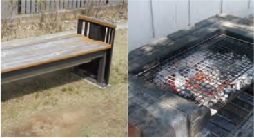 災害発生後の炊き出しなどで活躍が期待されるかまどベンチ。普段は座板の中に、五徳・風受けパネル・灰落しパネル簡易脚部を収納しており、いざというときには本格的なかまどに変身。座板部は簡易スツールとして利用できます。